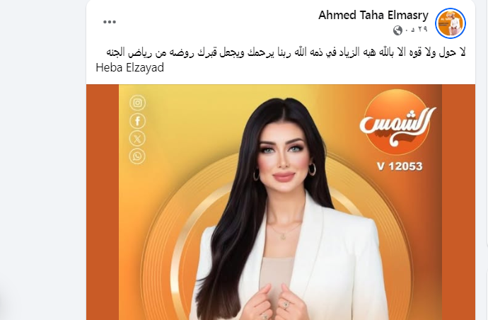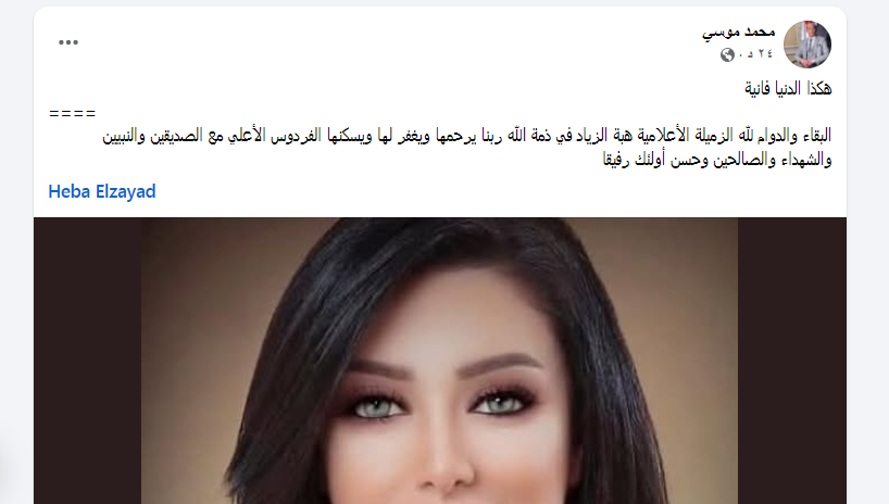 كما نشر أكثر إعلامي بالقنوات المصرية، خبروفاة الزميلة.