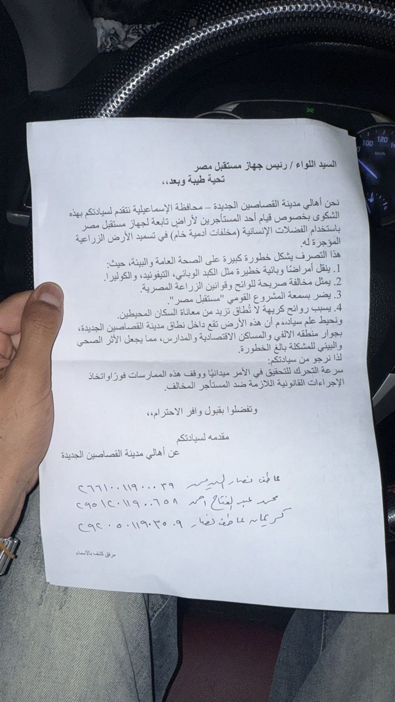 في سياق متصل، أصدر اللواء طيار أركان حرب أكرم محمد جلال، محافظ الإسماعيلية، أمرًا بفتح تحقيق عاجل بشأن الشكاوى المقدمة من أهالي مركز ومدينة القصاصين حول استخدام بعض المزارعين لسماد الصرف الصحي في الزراعة.