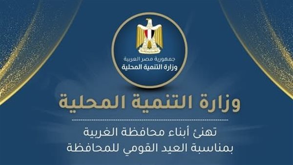تهنئة رسمية من التنمية المحلية لمحافظة الغربية في عيدها القومي