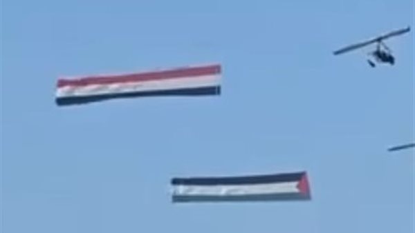 رفرف علم مصر وعلم فلسطين في سماء مدينة شرم الشيخ، في مشهد لاقى تفاعلًا واسعًا على منصات التواصل الاجتماعي.