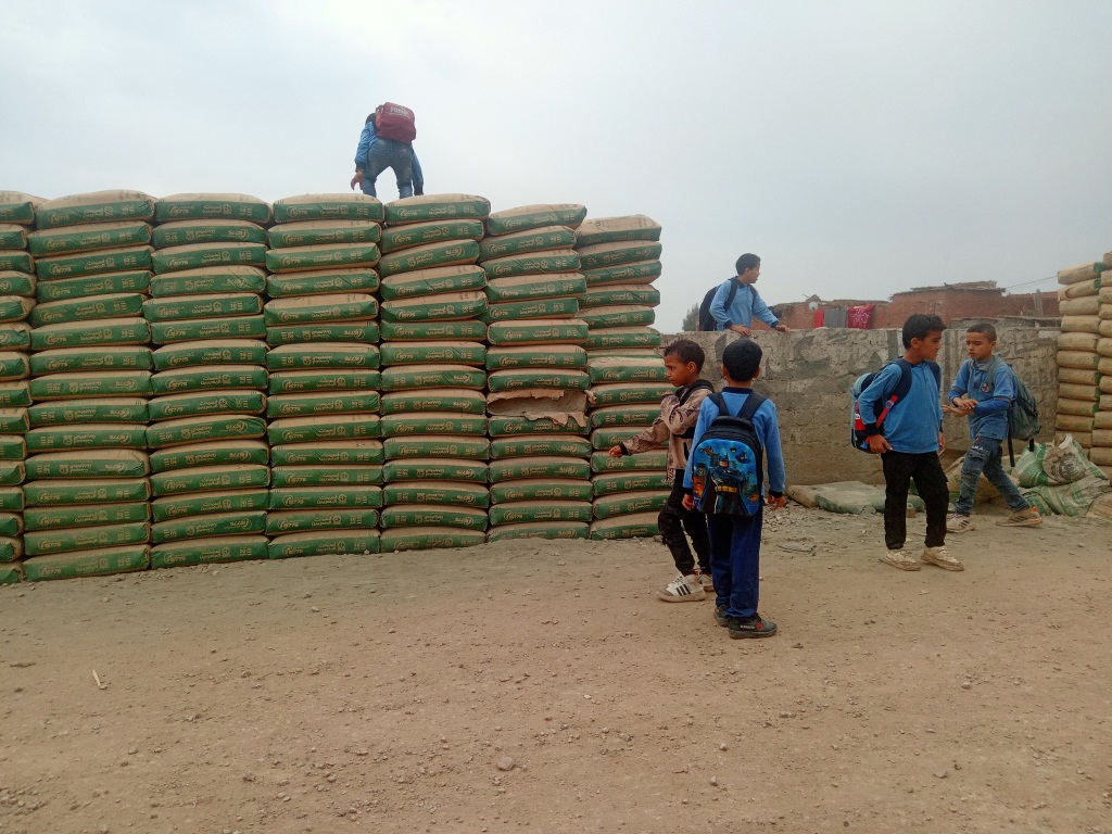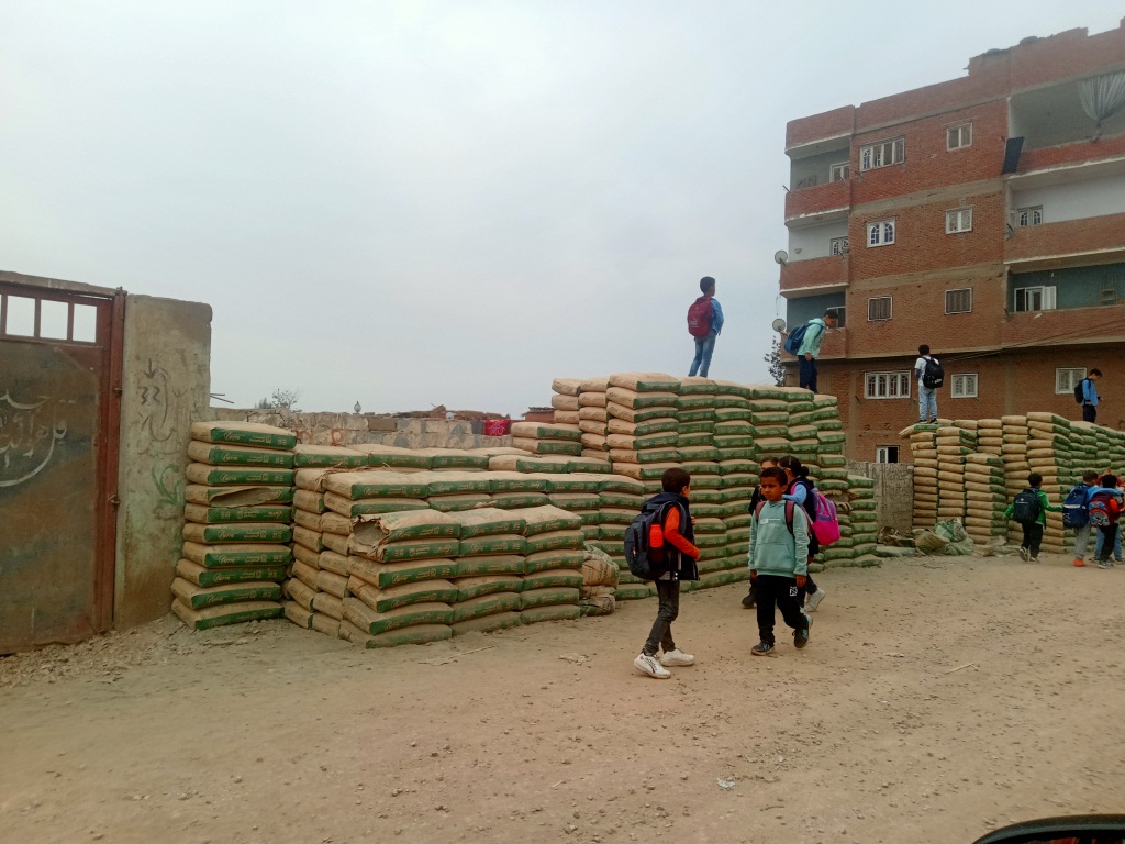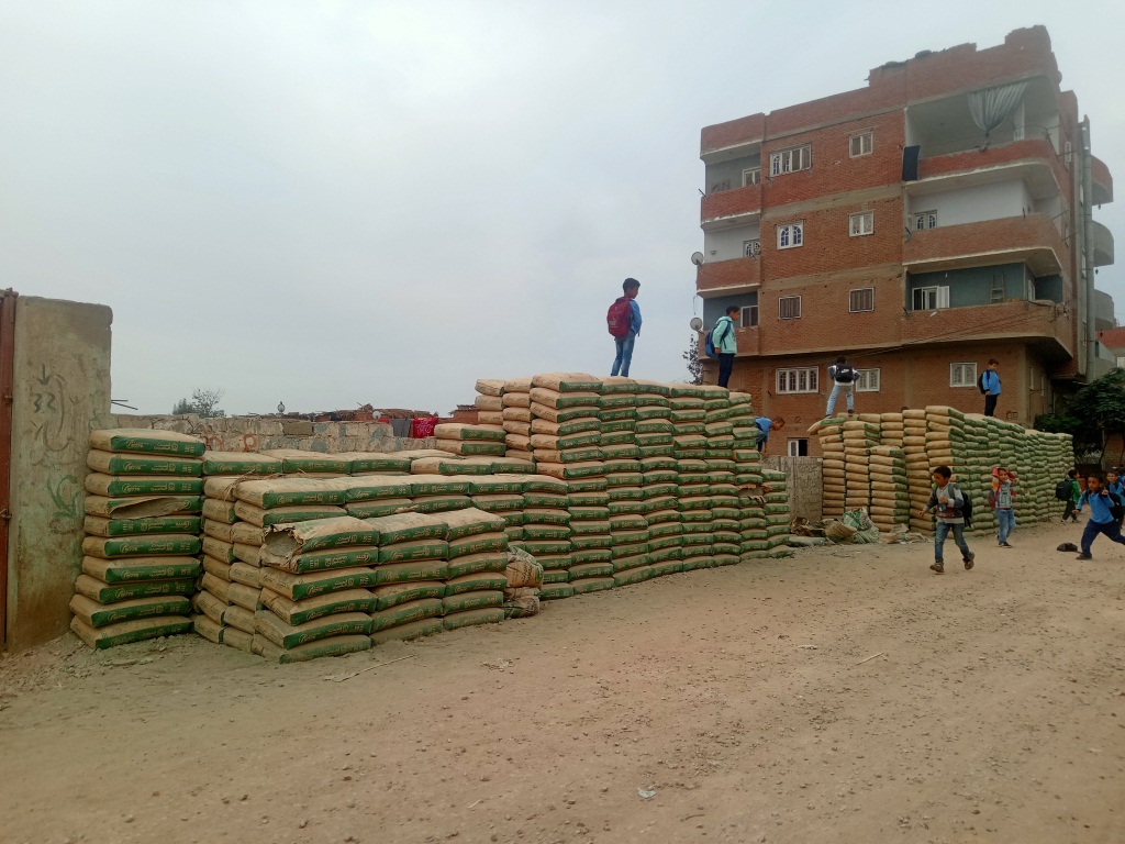 تحولت كميات الأسمنت التي قام المقاول بوضعها في أحد جوانب الطريق إلى ملعب للاطفال يلعبون عليها ويلهون ويقومون بتقطيع الشكائر والتى تقع على الارض دون أن يكون هناك اى محاسبة او حراسة لتلك الكميات من الأسمنت وهو الأمر الذى يزيد من الأعباء على المواطنين من رفع التكلفة أو المقابل لتلك الخامات .