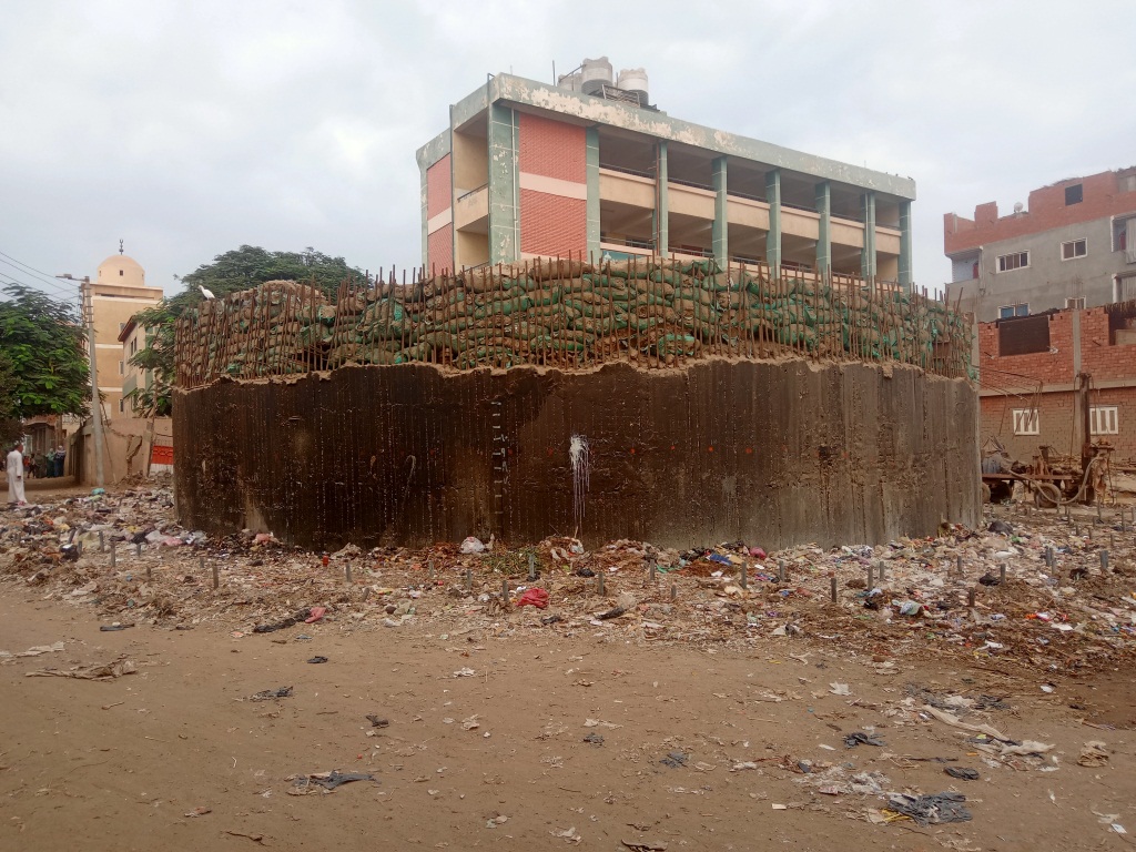 بدأ التنفيذ رسميًا بعد توقيع البروتوكول في 1 أبريل 2019، وتم استلام الموقع خاليًا من العوائق في 3 يوليو من العام نفسه، فيما تم توقيع المحضر الانضمامي في 23 ديسمبر 2019، تلاها أعمال الجسات في 18 نوفمبر 2019 ، لكن أثناء أعمال التغويص الخاصة ببيارة المشروع، حدثت انهيارات في التربة المحيطة بالموقع، تسببت في هبوط أرضي واسع امتد تأثيره إلى المدرسة المجاورة، ما أدى إلى سقوط سورها وظهور شروخ وتصدعات في غرفة الأمن، توقف العمل على الفور، وشُكلت عدة لجان هندسية متخصصة للوقوف على الأسباب الفنية وراء الكارثة.