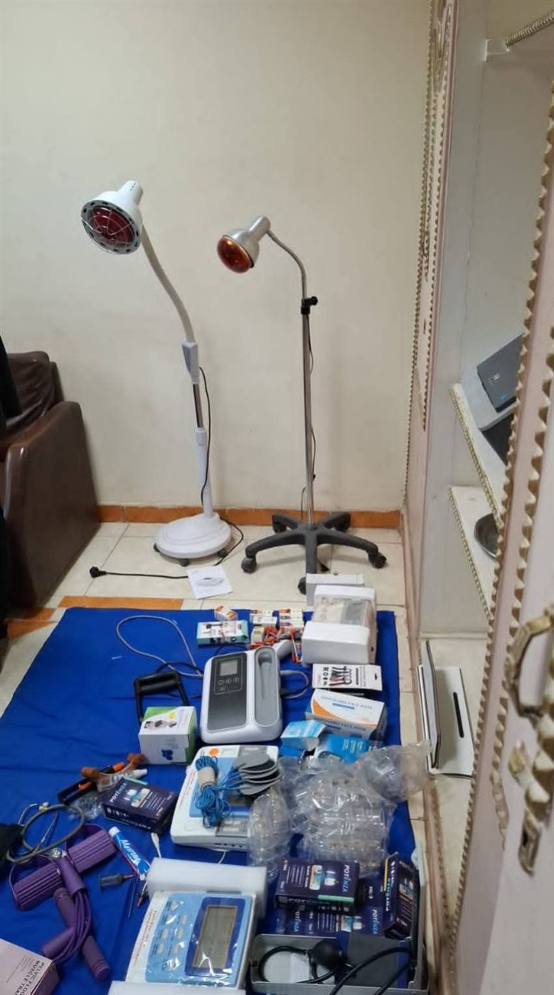 وأوضح " دويدار " أن المذكور كان يستقبل المرضى داخل المركز بالمخالفة للقانون رقم 415 لسنة 1945 الخاص بمزاولة مهنة الطب والقانون رقم 153 لسنة 2004 الخاص بالمنشأت الطبية الخاصة و القانون رقم 12 لسنة 2025 الخاص بتنظيم المسئولية الطبية و سلامة المرضي، وهو ما يعد مخالفة جسيمة تهدد صحة وسلامة المواطنين، مشيرًا إلى أن الحملة أسفرت عن ضبط عدد من الأجهزة المستخدمة في مجال العلاج الطبيعي، شملت: