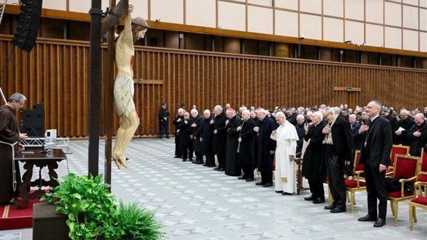 شهد قداسة البابا لاون الرابع عشر، التأمل الثاني لزمن المجيء، حيث ألقى الأب روبرتو بازوليني، واعظ القصر الرسولي، كلمة أمام الحبر الأعظم تحت عنوان: "إعادة بناء بيت الرب، كنيسة متحررة من التناقضات"، محذرًا من خطر التماهي الذي يحول الوحدة إلى اندماج مسطح يقلل الإنسان إلى مجرد كتلة.