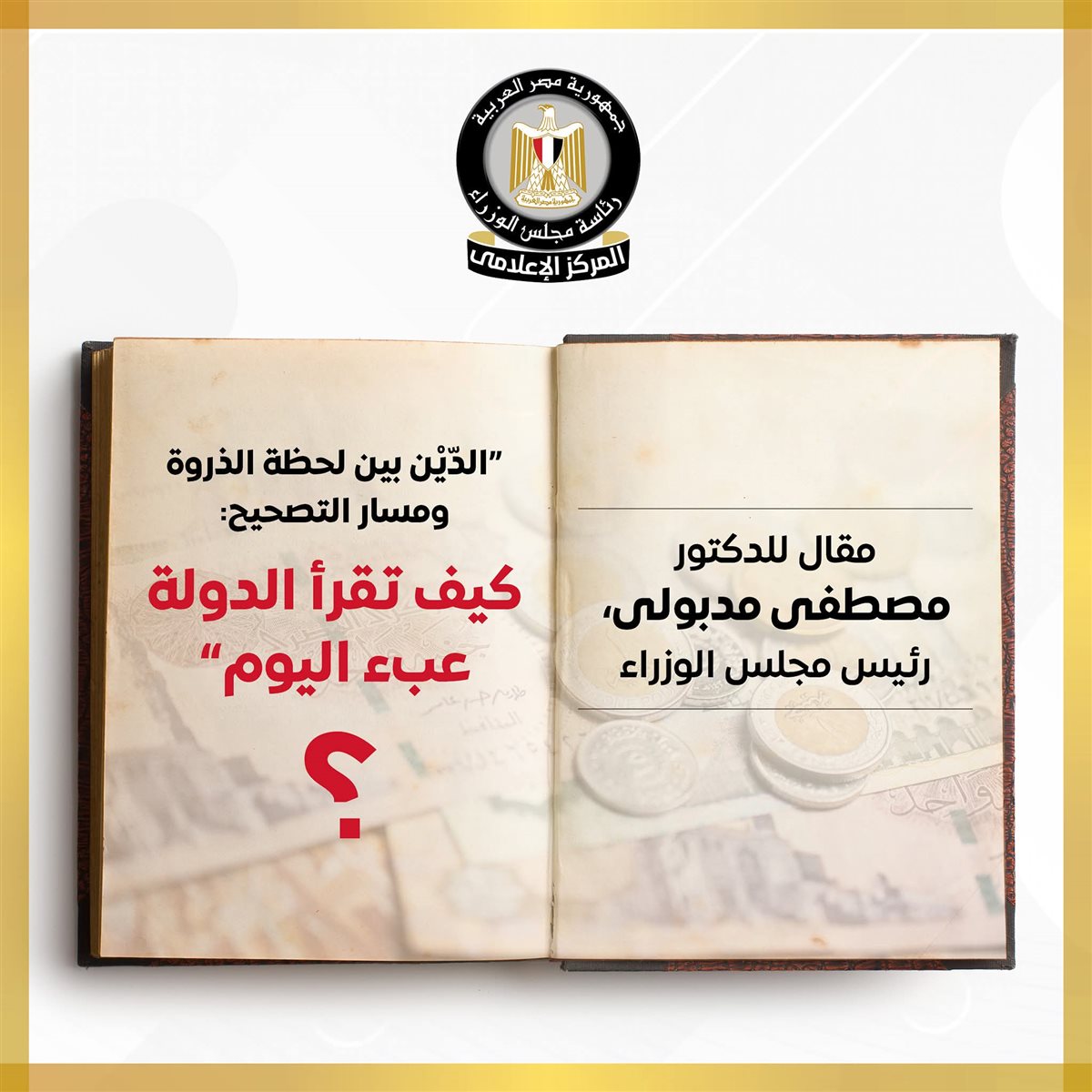 نشرت الصفحة الرسمية لرئاسة مجلس الوزراء، على موقع التواصل الاجتماعي فيس بوك مقالا للدكتور مصطفى مدبولي، رئيس مجلس الوزراء، بعنوان "الدين بين لحظة الذروة ومسار التصحيح: كيف تقرأ الدولة عبء اليوم؟.