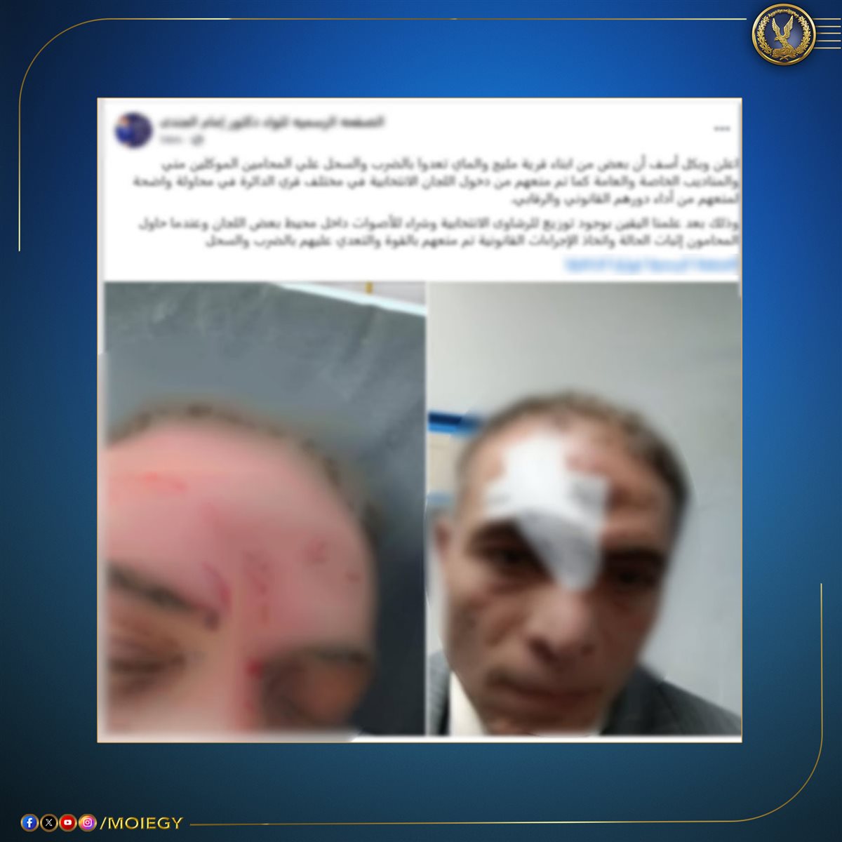 فى إطار كشف ملابسات منشور تم تداوله بصفحة أحد المرشحين لانتخابات مجلس النواب بدائرة شبين الكوم بمحافظة المنوفية بمواقع التواصل الاجتماعى، والمتضمن التضرر من قيام بعض الأهالى بقريتيتن تابعتين لذات الدائرة بالتعدى بالضرب على موكليه ومناديبه ومنعهم من دخول اللجان الانتخابية بالقريتين.