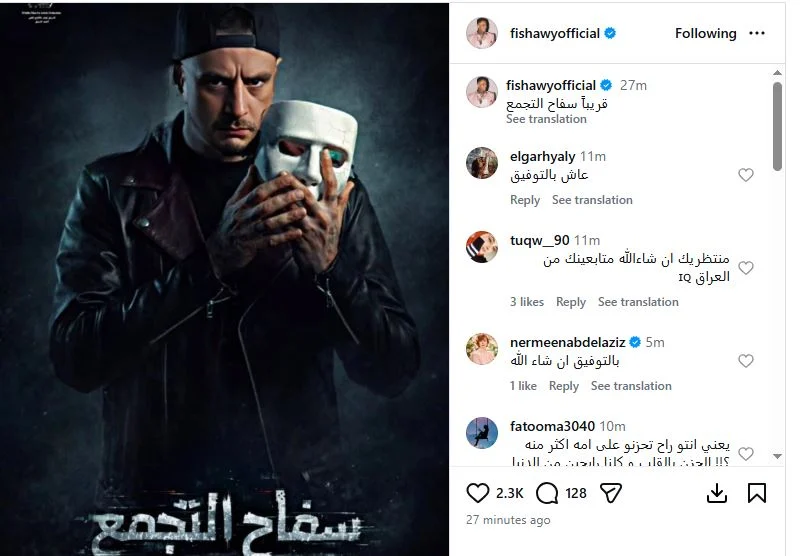 وعلق أحمد الفيشاوي على البوستر الذي نشره عبر حسابه الشخصي على موقع الصور والفيديوهات "انستجرام" في تصريح خاص لـ "بلدنا اليوم": "قريبًا سفاح التجمع".