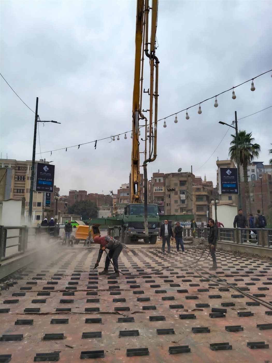 محافظ المنوفية يتفقد أعمال وضع الطبقة السطحية الأسمنتية بكوبري مبارك بشبين الكوم