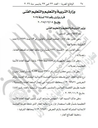 يأتي هذا القرار في إطار جهود الوزارة لتأمين وتطوير المنشآت التعليمية، وضمان استمرارية العملية التعليمية من خلال تسوية الوضع القانوني للأراضي والعقارات المستخدمة كمدارس، مع مراعاة الإجراءات القانونية المنصوص عليها في قوانين نزع الملكية للمنفعة العامة.