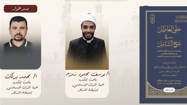 ويشارك في الندوة كل من الأستاذ يوسف محمود زمزم، والأستاذ محمد بركات، الباحثين بمكتب إحياء التراث الإسلامي بمشيخة الأزهر، حيث يستعرضان الجوانب العلمية والفكرية للكتاب، إلى جانب التعريف بمؤلفه العلامة قاضي القضاة فخر الدين عثمان بن علي بن عثمان الحلبي، المعروف بابن خطيب جبرين، المتوفى سنة 739هـ.