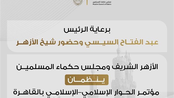 تحت رعاية السيد الرئيس عبد الفتاح السيسي، رئيس جمهورية مصر العربية، وبمشاركة وحضور رفيع المستوى لفضيلة الإمام الأكبر الأستاذ الدكتور أحمد الطيب، شيخ الأزهر الشريف، ينظم الأزهر الشريف بالتعاون مع مجلس حكماء المسلمين النسخة الثانية من مؤتمر الحوار الإسلامي–الإسلامي، تحت شعار «أمة واحدة.. ومصير مشترك»، وذلك يومي الأول والثاني من أبريل 2026 بالعاصمة المصرية القاهرة.