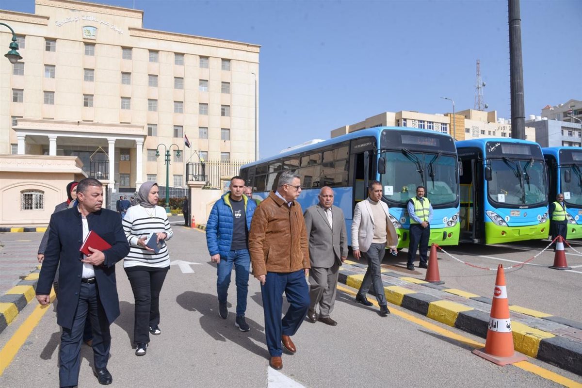 محافظ الإسكندرية يتفقد 153وسيلة نقل بديلة لترام الرمل بينها 15 أتوبيسًا