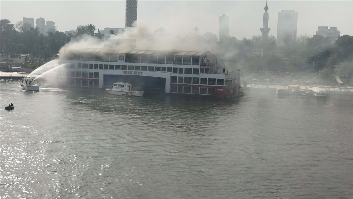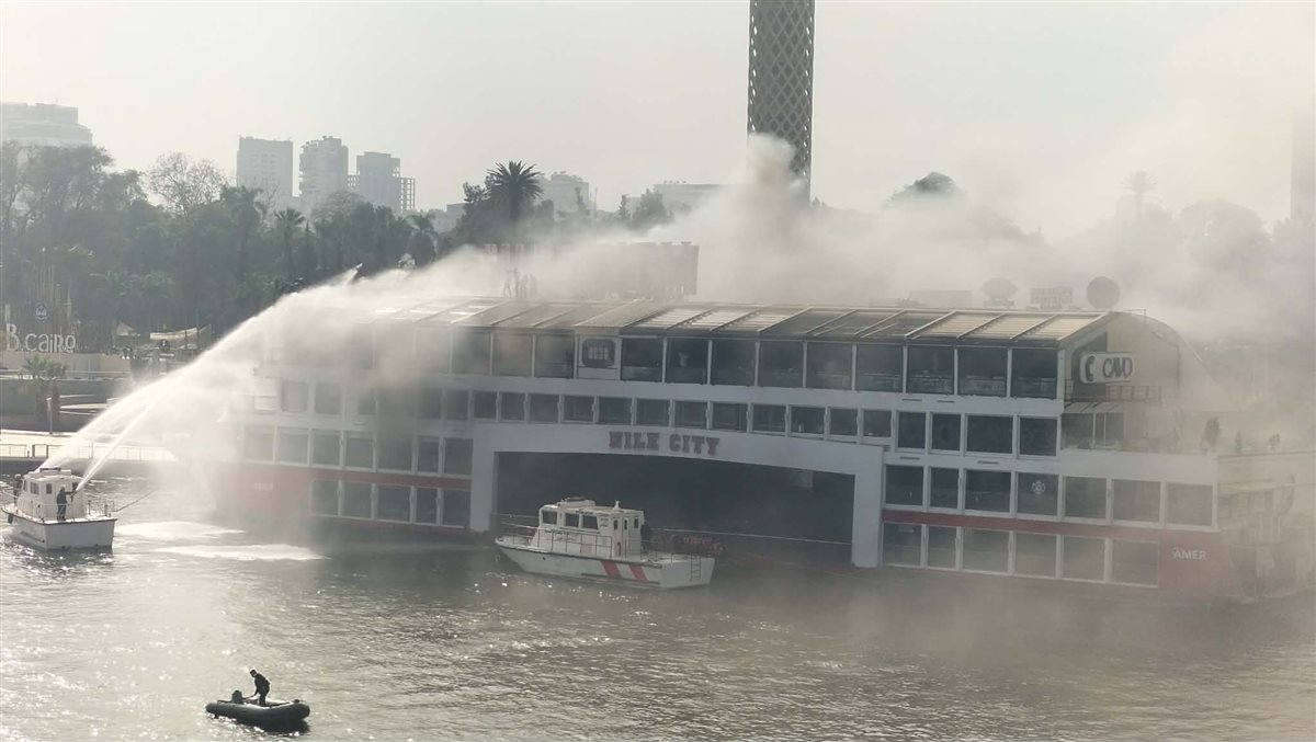 الحماية المدنية تسيطر على حريق يلتهم مطعم عائم على نهر النيل بالقاهرة