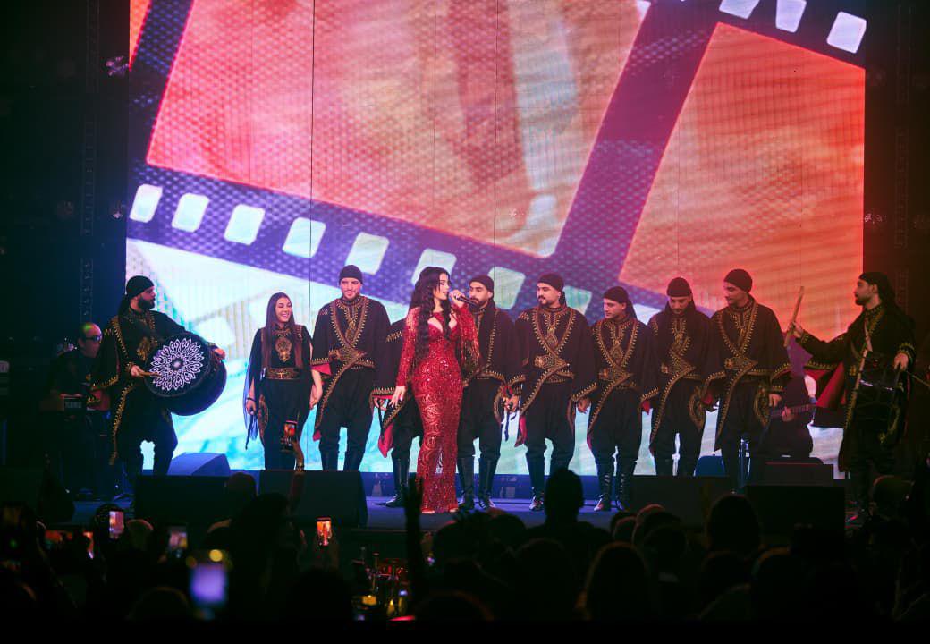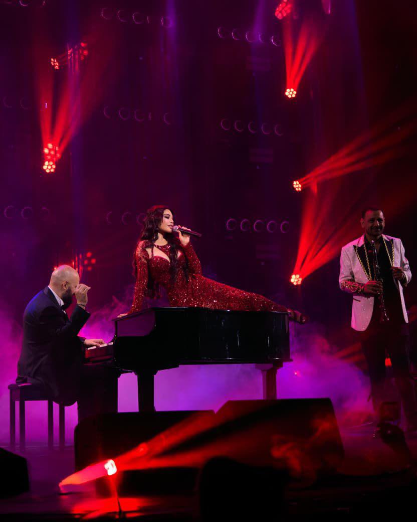 اعتمد شربل زوي لونا أحمر غنيا ومشبّعا، يرمز إلى الحب والشغف، لكنه قدّمه بقالب بصري متكامل، بحيث بدا الفستان امتدادا طبيعيا لهوية المناسبة. وقد ساهمت الخامات المضيئة والقصّة الضيقة في إبراز الحضور الآسر لهيفاء، لتتحوّل الإطلالة إلى مشهد بصري متكامل يعكس فهم المصمّم لطبيعة شخصيتها على المسرح.