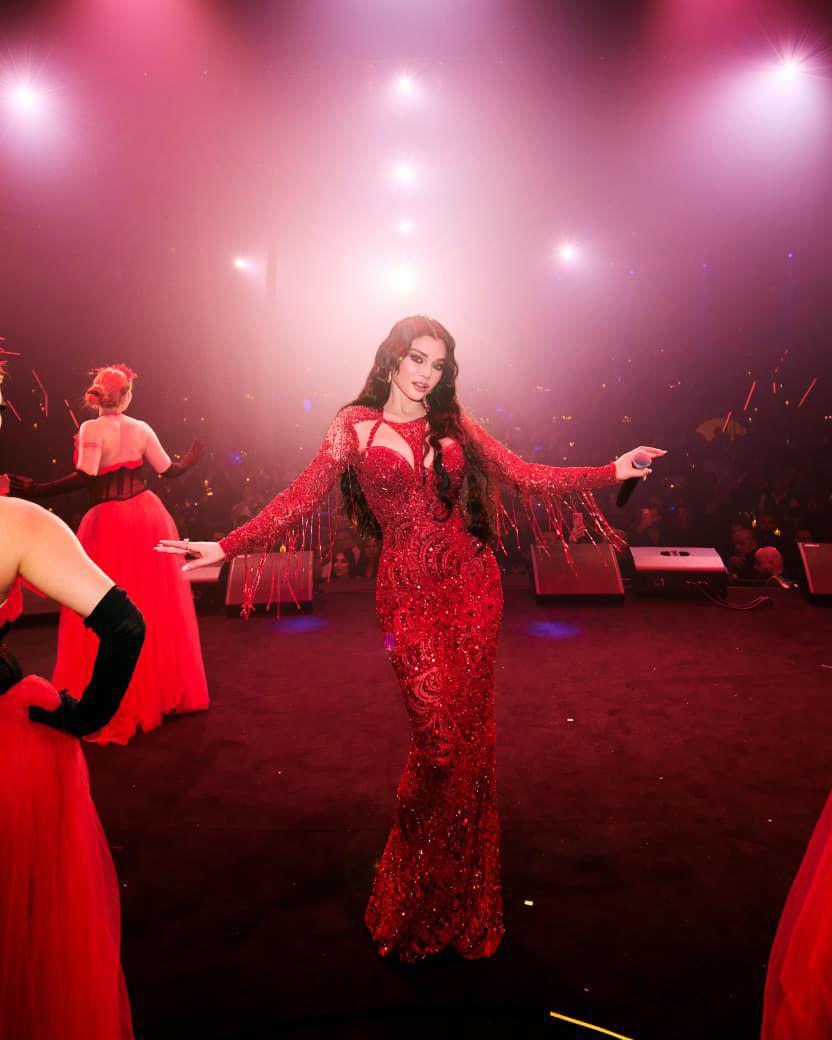التصميم لم يكن مجرّد فستان أحمر، بل قطعة مصاغة بعناية لتبرز التوازن بين الجرأة والرقي، مع تفاصيل هندسية عند منطقة الصدر أضفت لمسة عصرية، من دون أن تفقد الإطلالة طابعها الكلاسيكي الفاخر.
