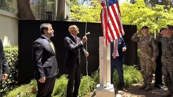 وزار براك العاصمة السورية في مايو الماضي وقام برفع العلم الأمريكي داخل مجمع السفارة رغم أن قرار إعادة الافتتاح الرسمي لم يكن قد أُنجز بعد.