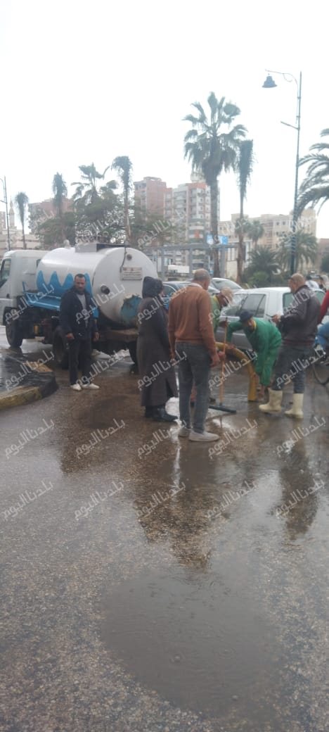 وتواصل الأجهزة التنفيذية أعمالها الميدانية بكامل جاهزيتها من خلال الدفع بسيارات الشفط والمعدات الثقيلة .