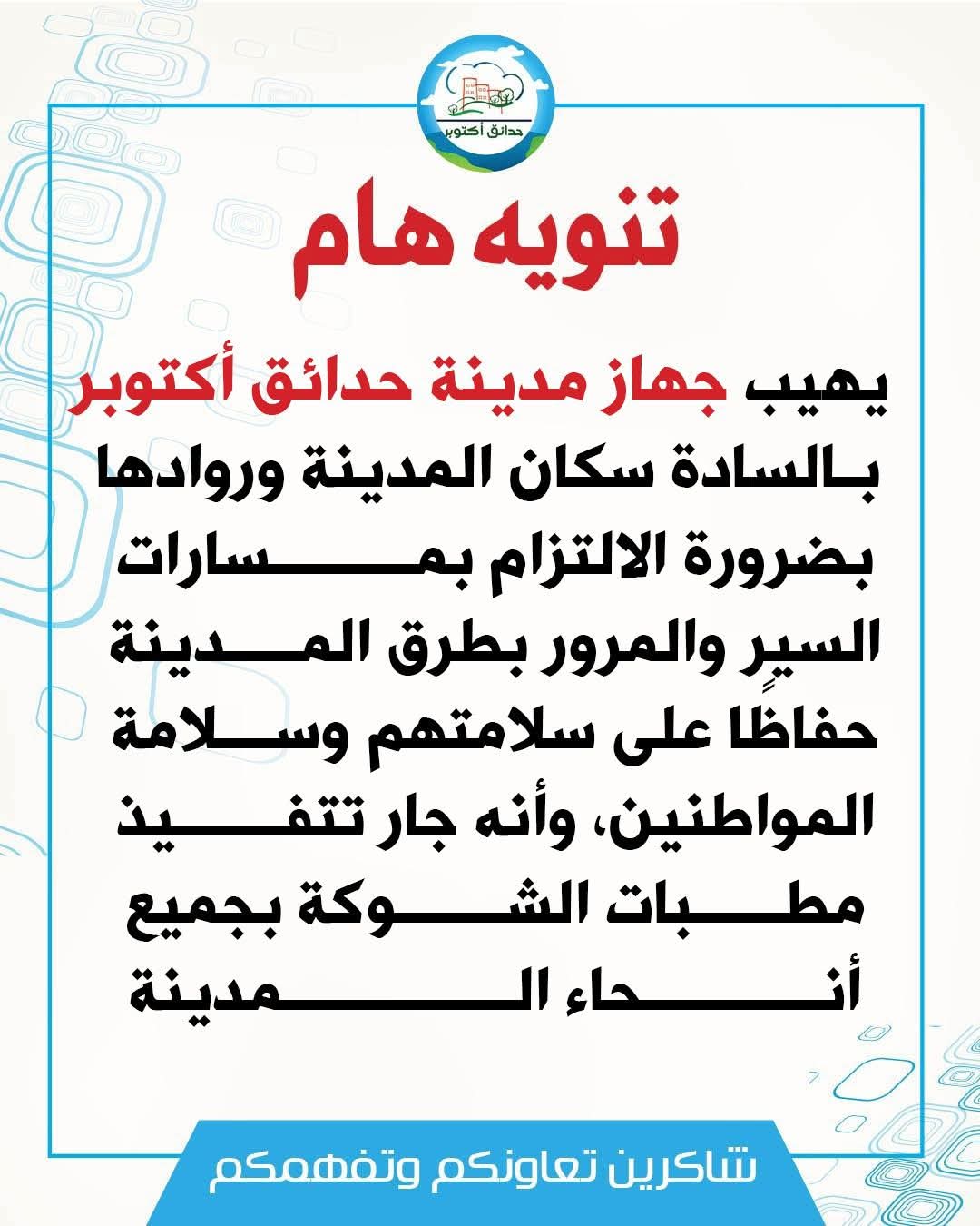 وأهاب المهندس ياسر عبدالحليم رئيس جهاز المدينة بالمواطنين بضرورة الالتزام بالاتجاهات المحددة وأحترام القواعد المرورية، حفاظًا على سلامتهم وسلامة الآخرين، وتجنبًا للمساءلة القانونية.