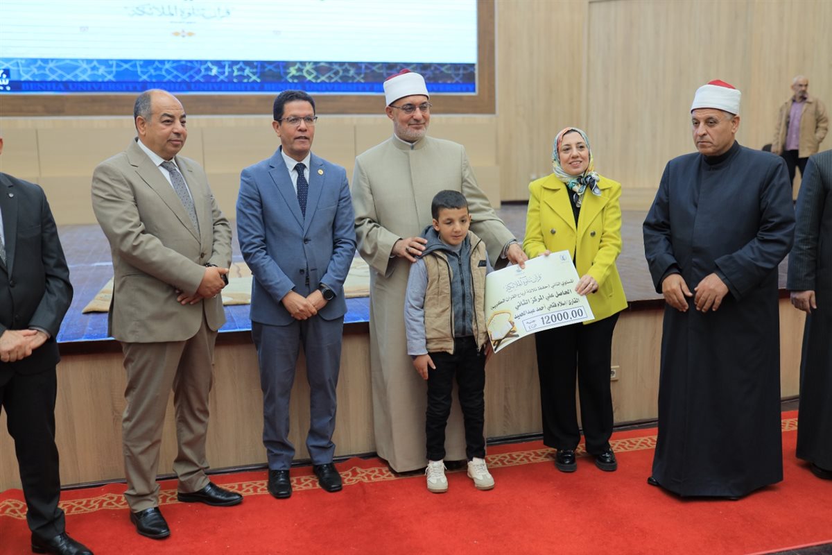 شهد الدكتور نظير عياد مفتي الجمهورية ورئيس الأمانة العامة لدور وهيئات الإفتاء في العالم، والدكتور ناصر الجيزاوى رئيس جامعة بنها، احتفالية تكريم الفائزين فى مسابقة قرآن تتلوه الملائكة.