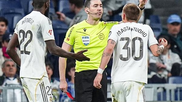 وفي الدقيقة 94، تلقى ماستانتونو لاعب ريال مدريد بطاقة حمراء مباشرة بعد أن وجه إهانة لفظية للحكم، حيث صرخ قائلاً: “يا له من عار، يا له من عار، تافه لعين”، وفق ما جاء في تقرير حكم اللقاء.