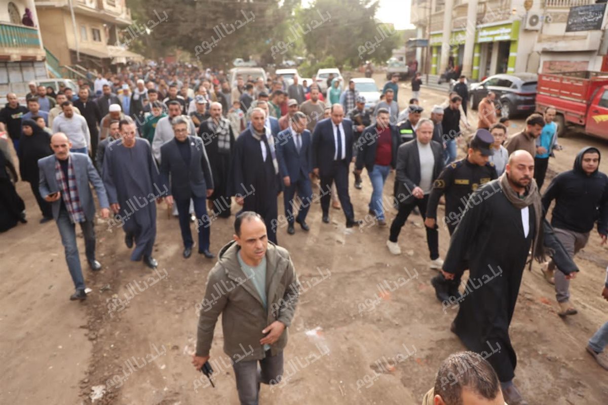 محافظ المنوفية يتقدم جنازة ضحايا " حادث السادات " ويقدم واجب العزاء لأسرهم