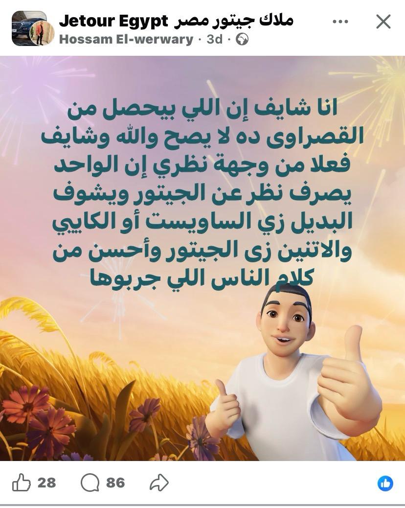عميل ينتقد وكيل سيارات جيتور على فيسبوك