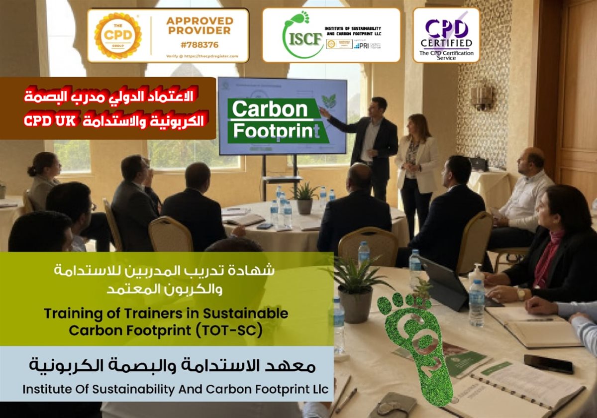 “مدرب البصمة الكربونية والاستدامة المعتمد”، والتي تُعد من البرامج الرائدة الهادفة إلى إعداد كوادر مؤهلة قادرة على نقل المعرفة وتطبيق أفضل الممارسات البيئية وفقًا للمعايير الدولية.