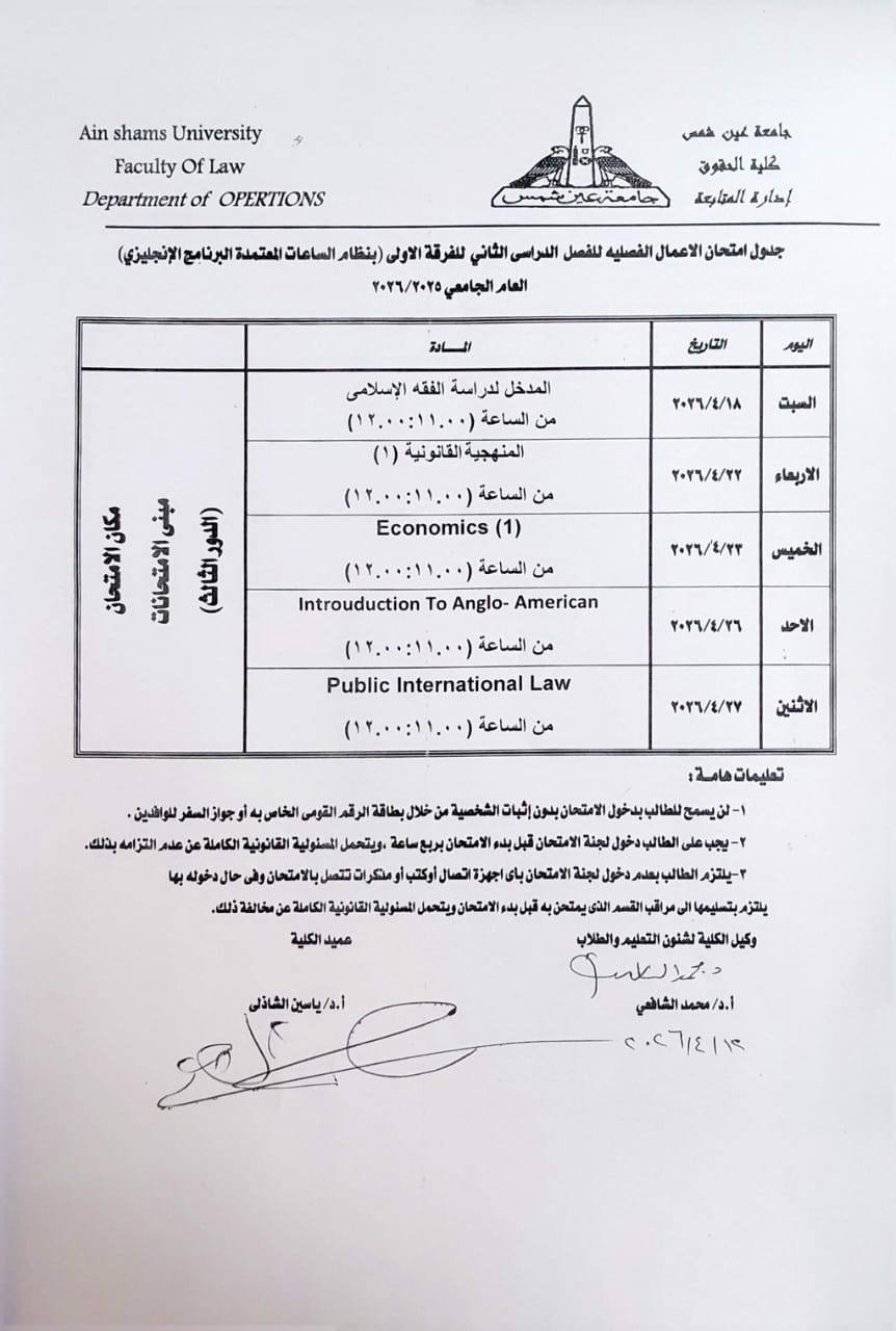 يتساءل الكثير من طلاب نظام الساعات المعتمدة بـ كلية الحقوق جامعة عين شمس، عن المحظورات التي يجب تجنبها أثناء امتحانات الميدتيرم للعام الدراسي الحالي 2025-2026 حتى يكونوا على معرفة بها، خاصة أن الامتحانات ستبدأ يوم 18 أبريل الجاري 2026.