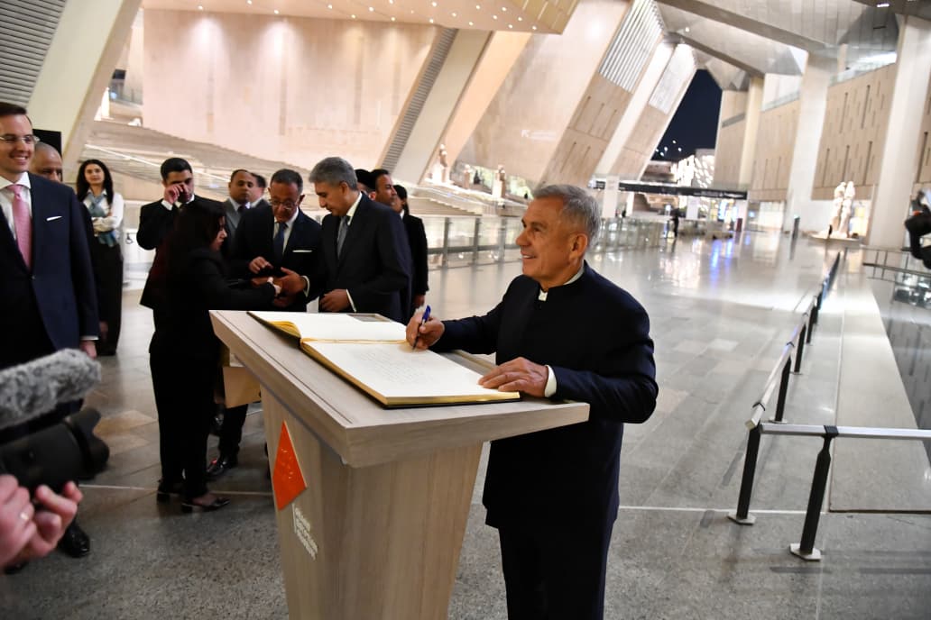 بالصور .. رئيس تتارستان يزور المتحف المصري الكبير ويشيد بتجربة العرض المتحفي