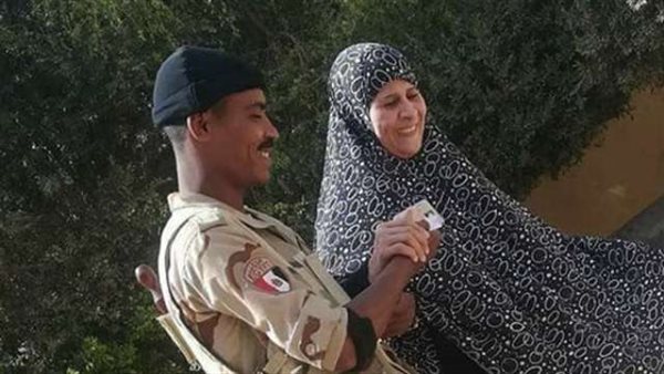 مجند يساعد مسنة للإدلاء بصوتها في مدرسة عزبة الوالدة بحلوان