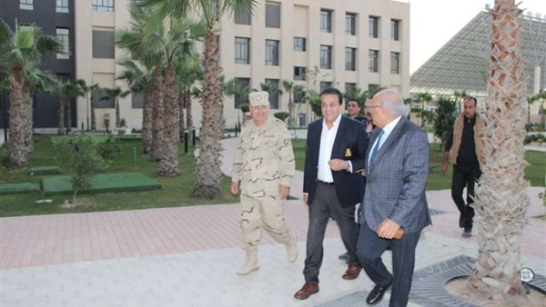 وشملت الزيارة المبنى الإداري بالجامعة، والمكاتب الإدارية والفصول الدراسية ومعامل الكمبيوتر، كما تفقد الوزير المقر الدائم للجامعة، وما به من فصول دراسية ومكاتب إدارية ومرافق ومبنى المعامل البحثية المركزية.