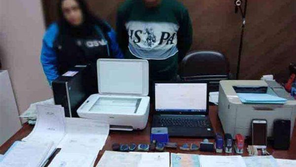 عقب تقنين الإجراءات بالتنسيق مع قطاع الأمن العام تم استهدافهم وأمكن ضبط إثنين منهم ،وبتفتيش مسكن أحدهما ، تم العثور على (30 خاتم شعار الجمهورية منسوبة لعدة جهات حكومية مختلفة – 22 أكلاشيه لجهات مختلفة – 327 مستند منسوب صدوره لجهات مختلفة "مزورة" – كمية من صور لمستندات "مؤهلات دراسية – شهادات جامعية – سجل تجارى – عقود زواج – توكيلات" منسوبة لجهات مختلفة – مبلغ مالى- 2 جهاز كمبيوتر بمشتملاتهما – جهاز تابلت يحوى برامج "فوتو شوب" لرسم صور للأختام المزورة – إسكانر) وبمواجهتهما بما أسفر عنه الضبط إعترفا بإرتكاب الوقائع المشار إليها بالإشتراك مع المتهم الأخر ، كما أضافا بحيازتهما للمضبوطات بقصد إستخدامها فـى التزوير ، والمبلغ المالى من حصيلة نشاطهم الإجرامى والهواتف المحمولة للتواصل مع عملائهم ، وتم إحالتهما إلي النيابة العامة للتحقيق، وضبط المتهم الهارب.