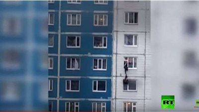 "عملية تحبس الأنفاس".. لحظة إنقاذ فتاة من شقة مشتعلة (فيديو)