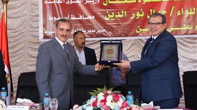 "سعفان" ومحافظ أسيوط يتبادلان الدروع في افتتاح ملتقى التوظيف