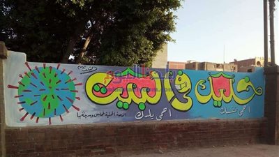 "خليك في البيت".. رسوم توعية على الأسوار جنوب بني سويف لمنع انتشار كورونا