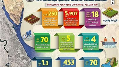 "إنفوجراف".. مجلس الوزراء يعرض نماذج لأهم المشروعات لتنمية سيناء منذ عام 2014