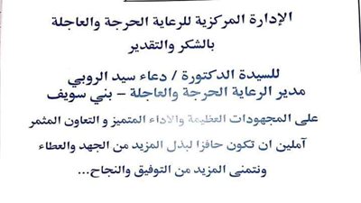 "الصحة" تكرم مدير الرعاية الحرجة والعاجلة ببني سويف