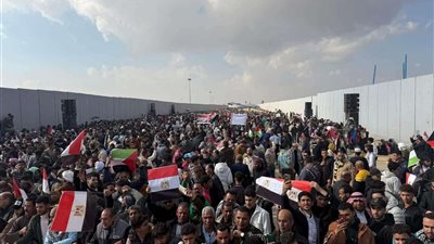"كلنا معاك يا سيسى" .. الآلاف يحتشدون أمام معبر رفح رفضا لتهجير الشعب الفلسطيني