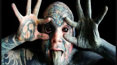 "شيطان".. مدرس أطفال يوشم عينيه ولسانه وجسده بالكامل (صور)