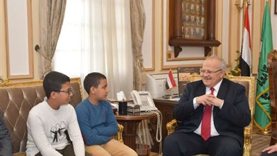 رئيس جامعة القاهرة يستقبل الطفل المتميز في الرياضيات بمكتبه