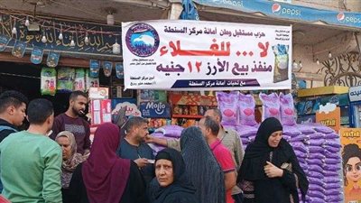 "مستقبل وطن" يطلق قوافل غذائية مكثفة ويوفر الأرز للمواطنين بأسعار مخفضة تحت شعار "ضد الغلاء" فى المحافظات