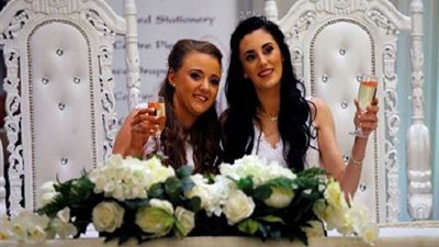 "شارني وروبن".. حكاية زواج فتاتين شاذتين أثرن ضجة (صور)