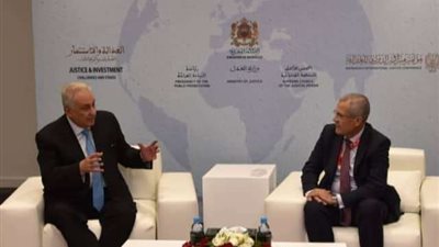 "عاشور" يلتقي وزير العدل المغربي على هامش مشاركته بمؤتمر مراكش للعدالة
