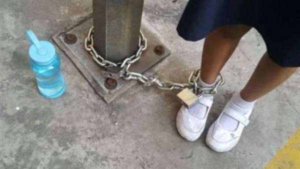 تداول رواد مواقع التواصل الاجتماعي "فيس بوك" مجموعة صور لطفلة ترتدي ملابس المدرسة ومقيدة بعمود إنارة، منددين بهذا الفعل.بالنسبة للكثيرون تعتبر المدرسة هي أكثر مكان يكرهون الذهاب إليه، وقد يفعلون أي شيء للتغيب عنها من ادعاء المرض للهروب من الحصص الدراسية، لكن عندما يكتشف الوالدان ذلك، فإن العقاب عادة ما يكون قاسيا، لكن ربما ليس في قسوة العقاب الذي تلقته طفلة في الثامنة من عمرها بسبب تغيبها عن المدرسة الأربعاء الماضي.وفي سياق متصل أوضحت صحيفة "ميرور" البريطانية أن سيدة في الثلاثين من عمرها قررت عقاب طفلتها لتغيبها عن المدرسة بتقييد قدميها بالأصفاد في عمود إنارة بجراج قريب من المنزل، الذي يقع بالعاصمة الماليزية "كوالالمبور"، وتركت الفتاة غارقة في دموعها وعاجزة عن التحرك لمدة ساعة.وعندما انتبه الجيران إلى وضع الفتاة حاولوا مساعدتها وتحطيم الأغلال، لكنهم فشلوا في ذلك إذ أن الأغلال كانت سميكة للغاية وكانت مقفلة بقفلين، فاضطر الجيران إلى الاتصال بالشرطة التي قدمت خلال 10 دقائق لتحرير الفتاة التي لم تتوقف عن البكاء طوال الوقت.وقامت الشرطة باستدعاء والدة الطفلة، والتي لم يتم الإشارة إلى هويتها، للتحقيق معها، وتم إطلاق سراحها بعد ذلك، فيما تقوم الشرطة حاليا بالتحقيق في تلك الواقعة للتأكد من عدم تعرض الطفلة لأي أذى مستقبلا.